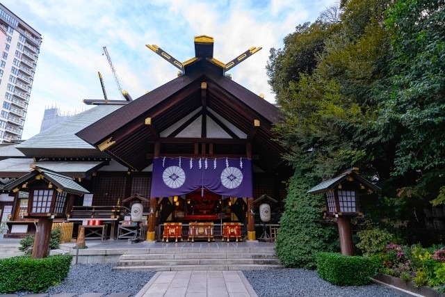 「東京のお伊勢さま」と称され、伊勢神宮の遥拝殿として明治時代に創建されました。日本で最初に「神前結婚式」を行った神社としても有名で、現在は都内屈指の縁結びのパワースポットとして、多くの参拝客が訪れます。休日は参拝客の活気であふれ、平日は凛とした清々しさが漂い、地域の暮らしを見守ってくれるありがたい存在です。